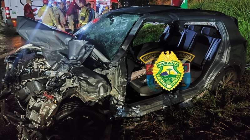 Um acidente envolvendo três veículos deixou um homem morto e quatro pessoas feridas na noite desta quarta-feira (28), na PR-444, em Arapongas (Região Metropolitana de Londrina). A colisão ocorreu por volta das 18h, no km 01 da rodovia, no trecho entre Arapongas e Londrina. Segundo a PRE (Polícia Rodoviária Estadual), um Toyota Corolla invadiu a pista contrária e colidiu frontalmente com um VW T-Cross e, em seguida, com uma VW Saveiro Cross. O motorista do Corolla morreu no local.